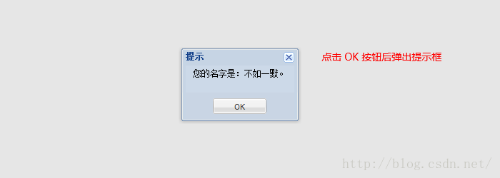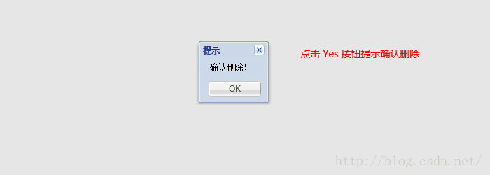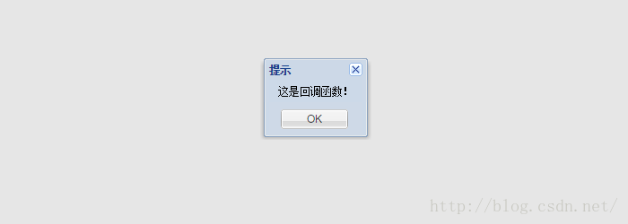 alert( String title, String msg, [Function fn], [Object scope] ) : Ext.MessageBox显示一个标准的只读消息框,含有一个OK按钮 (类似于基本的alert提示框)。如果传递了一个回调函数,在用户点击按钮之后它会被调用,并且被点击按钮的id会作为唯一的参数传递给回调函数 (也可以是右上角的关闭按钮)。