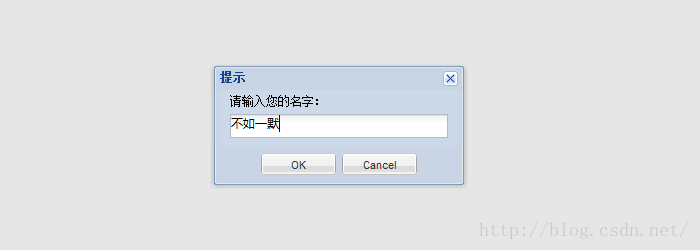 prompt( String title, String msg, [Function fn], [Object scope], [Boolean/Number multiline], [String value] ): Ext.MessageBox显示一个消息框,含有OK和Cancle按钮,提示用户输入一些文本 (类似于JavaScript的 prompt)。 prompt可以是一个单行或者多行文本框。 如果传递了一个回调函数,当用户点击任意一个按钮时都会被调用, 并且被点击按钮的id(也可以是右上角的关闭按钮) 和输入的文本将被作为两个参数传递给回调函数。