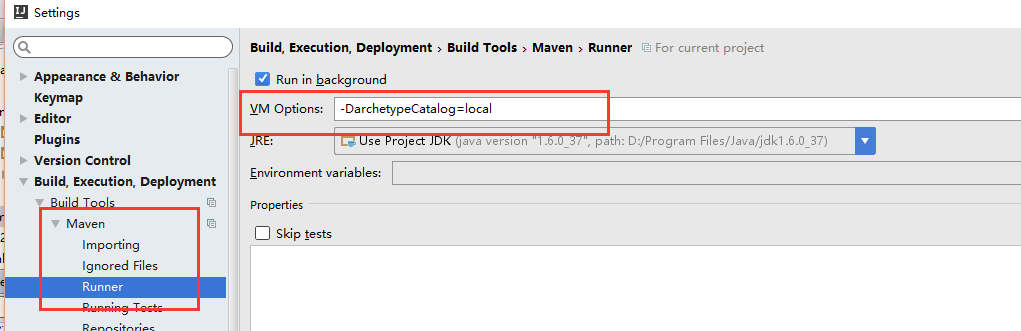 intellij idea 打开maven项目后,在settings中设置 maven的运行参数: