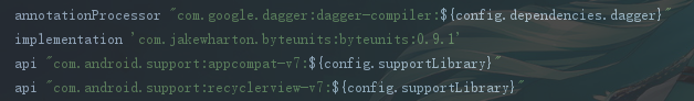 这里我们定义config变量为rootProject.ext(groovy语言定义,有兴趣的同学可以了解下)api与implementation为Android studio3.0新加入命令,api与compile功能一样