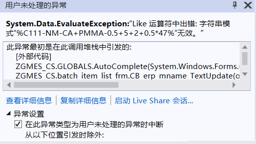 以上就是柔弱金针菇最近收集整理的关于Like 运算符中出错: 字符串模式“%XXXX*XXXX%”无效datatable.select中Like 运算符中出错: 字符串模式“%XXXX*XXXX%”无效的全部内容,更多相关Like内容请搜索靠谱客的其他文章。