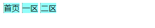 <head> <meta charset="UTF-8"> <title>display</title> <style> .c1{ background-color: #a0fff9; border-left: 1px dotted gray; display: inline; } </style> </head> <body> <div class="c1">首页</div> <div class="c1">一区</div> <div class="c1">二区</div> </body>