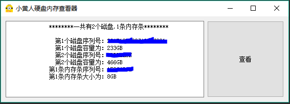 电脑内存硬盘查看器[序列号和容量](C++、QT版本和Python、PySide2版本)
