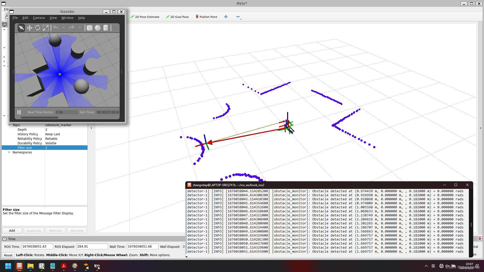 下图所示,机器人和障碍物直接距离: