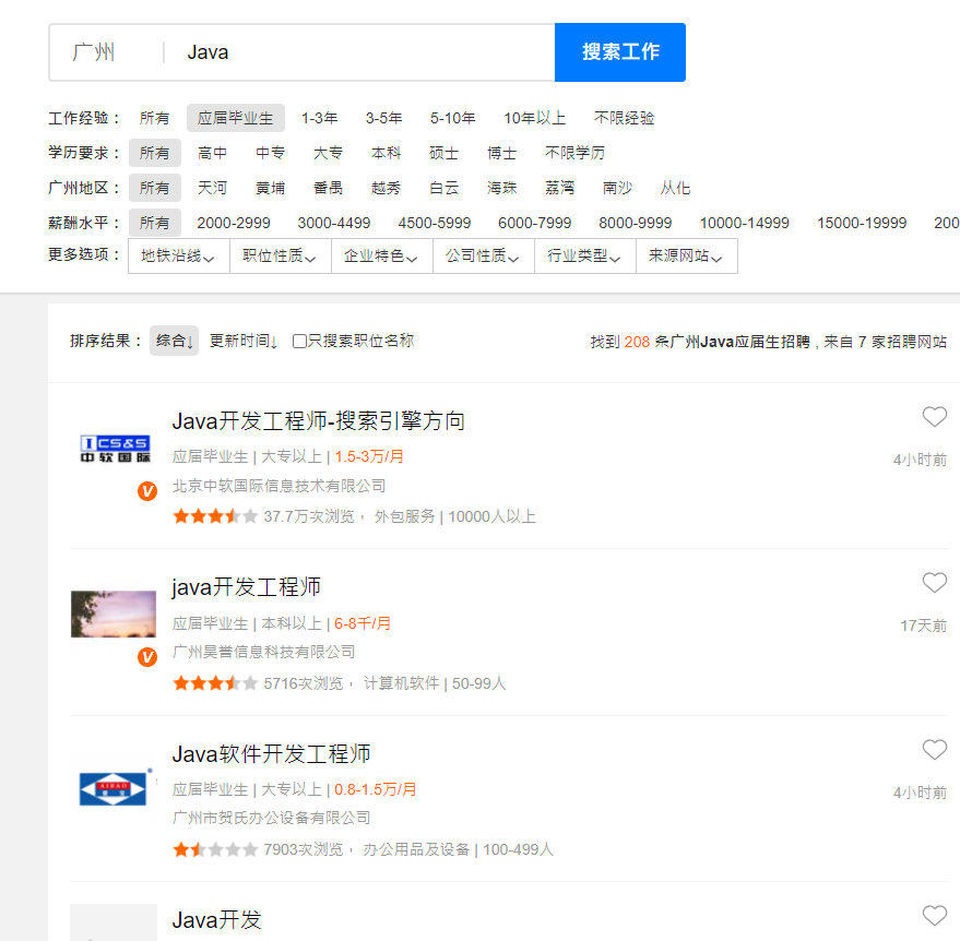 我建议你在招聘网站上搜索一下,我刚刚在广州职友集上看了本科应届生大数据招聘职位没有