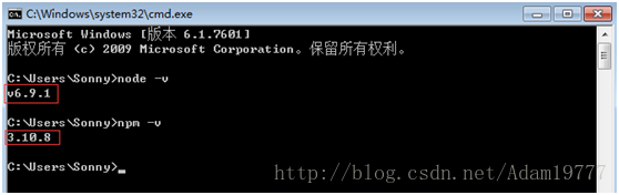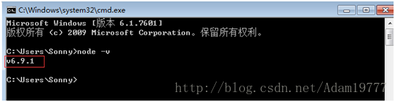 npm集成在node中的,所以直接输入npm-v查看npm的版本信息