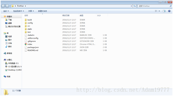 8、打开firstVue文件夹,项目文件如下所示。