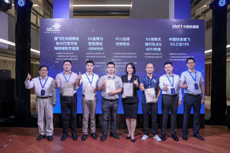 在行业数字化转型过程中,为解决5G物联网设备硬件成本、运营商流量成本以及云存储成本问题,“物联网+区块链”技术能让物联网数据无缝对接至区块链上,形成全新基于数据价值开放的商业模式,保证物联网数据在不可篡改的前提下,达成数据可信交换。基于此,联通数科与广和通、摩联科技联合开发了基于BoAT区块链应用框架的雁飞区块链模组,使用区块链技术改造物联网端侧设备,在物联网设备终端最靠近数据源头的位置建立信任锚点,打造“可信数字底座”。会上,“雁飞区块链模组助力打造可信物联网数字底座”项目被授予5G行业终端模组生态测评证书,大力验证项目的技术创新性与产品实用性。