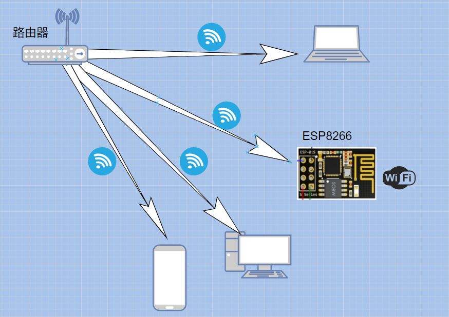 ESP8266的 AP 模式指的就是ESP8266充当路由器的角色,可以产生热点由其他设备查询到并可以接入。这个过程如下图所示: