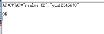 (2)使用 AT+CWJAP="SSID","password" 来连接 WiFi 热点。操作示意如下: