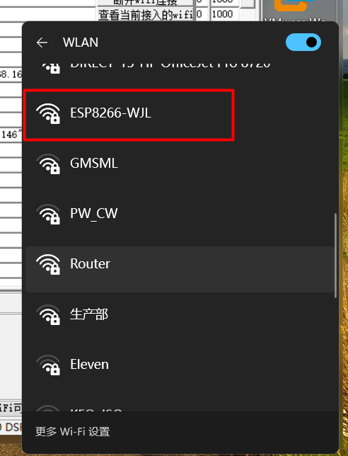 在PC电脑上的wifi列表上就可以看到esp8266的热点,输入用户和密码接入,如下图: