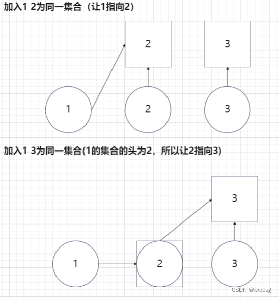 加入关系就让此元素所在的集合的头指向另一个元素
