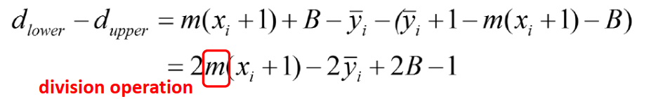 M是斜率,要用到除法,为了减少计算量,我们可以乘以dx(这里假设dx是正的,负的就是换一个方向而已,后面会讲到),乘dx不改变符号