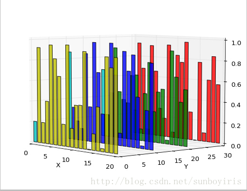 ax.bar(xs, ys, zs=z, zdir='y', color=cs, alpha=0.8)X,Y,Z轴标注