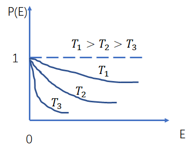 设X代表某一物质体系的微观状态(一组状态变量,如粒子的速度和位置等),E(X)表示该物质在某微观状态下的内能,对于给定温度T,如果体系处于热平衡状态,则在降温退火过程中,其处于某能量状态的概率与温度的关系遵循Boltzmann分布规律。分布函数为:
