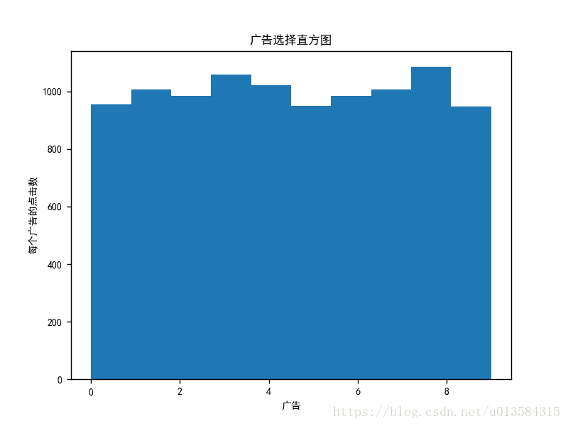 图中我们可以看到,由于是随机的,10000个人选择10种广告,每个人平均会在1000次左右