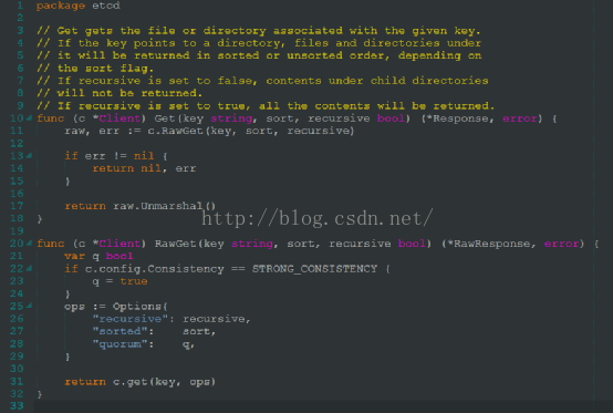下面我们看看etcd client都提供了那些操作。 Get操作 我们看get.go