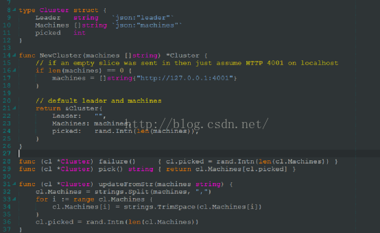 从上面的cluster的代码来看其实pick就是返回cluster中的一台主机,而pick的机器则是一个随机的主机,在初始化的时候有随机,在failure的时候,又会重新随机