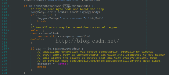 进行校验头部,如果是正常的,则退出for循环 退出for循环之后,返回了一个RawResponse结构体 最后我们返回到