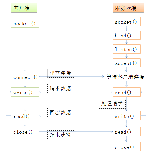 这里盗一张图,表达一下Socket通讯的生命周期……见谅……