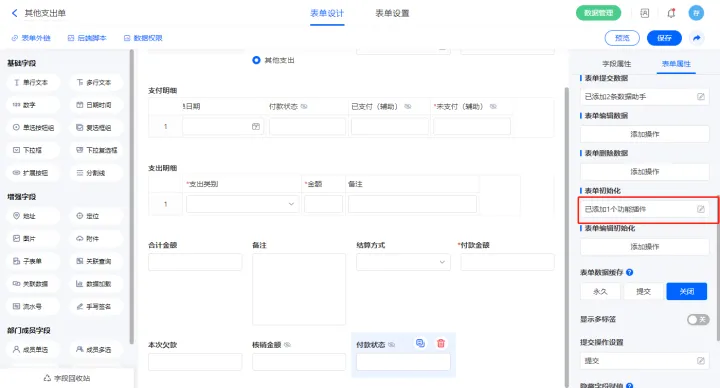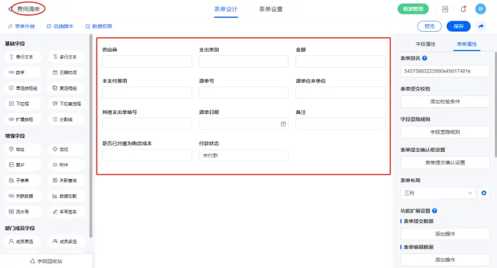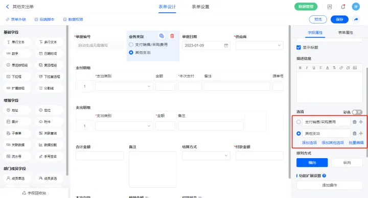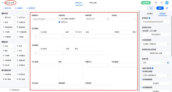 2.8、表单【其他支出单】字段及表单属性设置