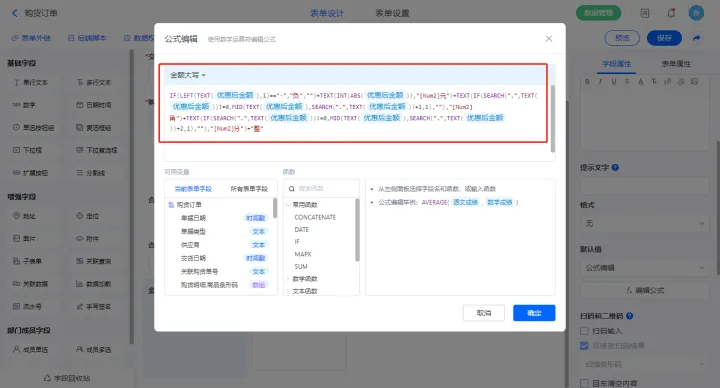 | 金额大写 | 单行文本 |