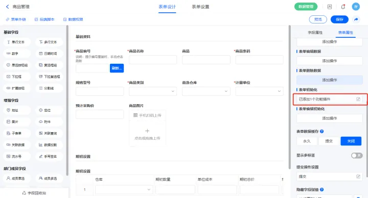 1)表单初始化新增功能模块【自定义流水号】;