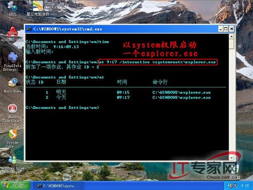 需以SYSTEM帐户的身份启动Windows的Shell程序Explorer,就相当于用SYSTEM身份登录Windows了。