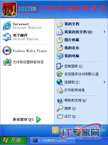 System权限是比Administrator权限还高的系统最高权限,利用它可以完