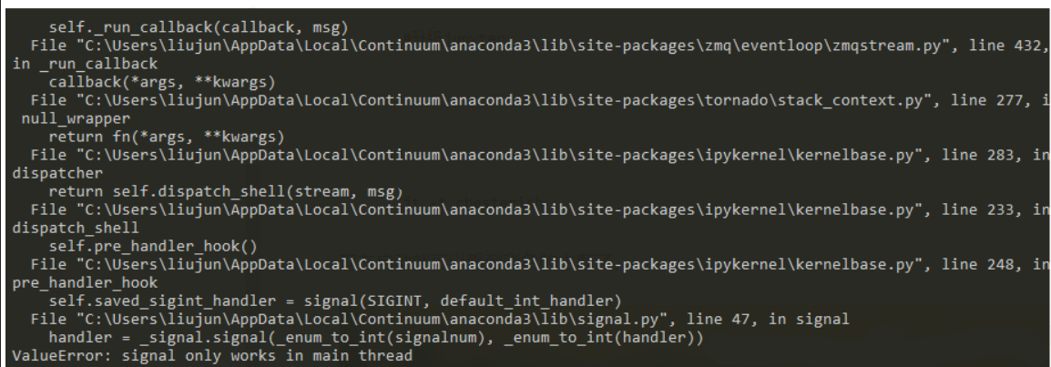我是靠谱客的博主 妩媚季节,这篇文章主要介绍jupyter notebook 运行出错,ValueError: signal only works in main thread ERROR:tornado.application:Except问题提示解决方式参考资料,现在分享给大家,希望可以做个参考。