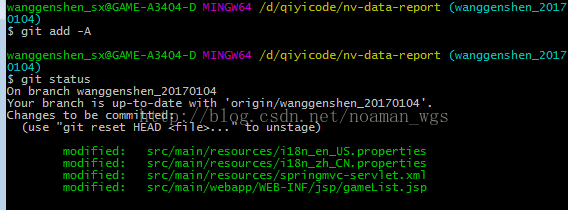 2 $ git add -A:添加所有要上传的文件(代码)