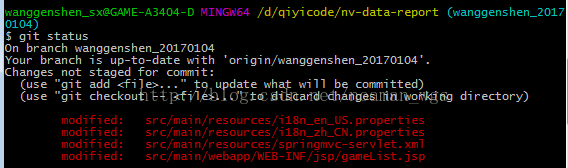 1$git status:查看所在分支和修改的文件: