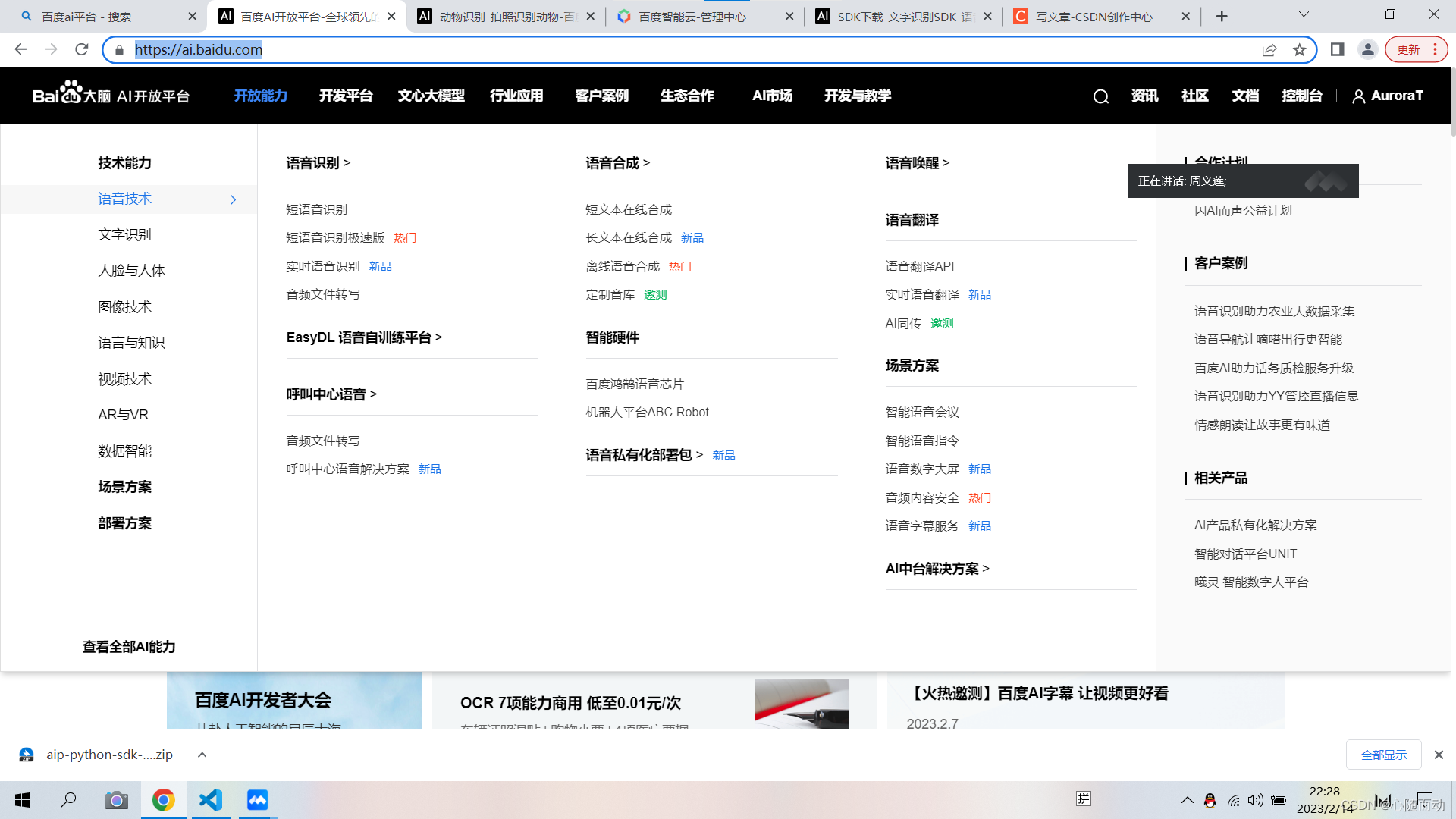 这里,博主建议大家先注册账号百度AI开放平台-全球领先的人工智能服务平台 ,然后找到开放能力中你想要的功能,然后创建应用,获取个人唯一APIKey,Secret Key。
