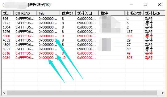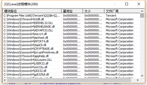 首先我们拿到该进程的进程模块,用来对比进程中线程的模块是否在这里面