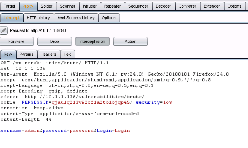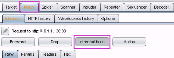 打开burpsuite,选择proxy,当intercept is on时表示burpsuite截断功能开启
