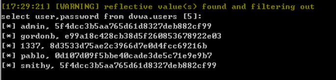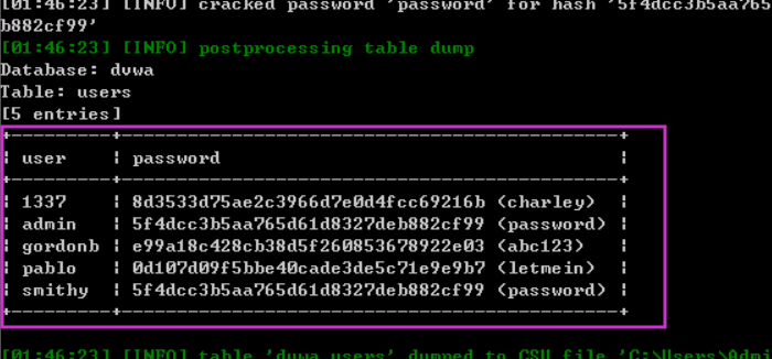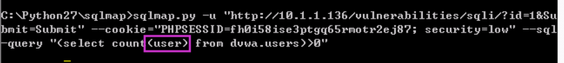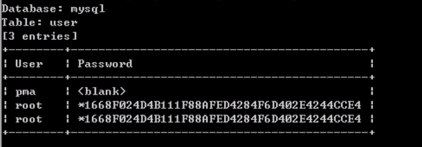 借助sqlmap选项--sql-query结合手工注入语句就得到了user表中的用户信息。