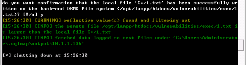 以上就是知性草丛最近收集整理的关于注入工具使用-sqlmap利用sqlmap进行需要登录的注入利用sqlmap进行POST注入利用sqlmap进行文件读写利用sqlmap辅助手工注入利用sqlmap交互式写shell的全部内容,更多相关注入工具使用-sqlmap利用sqlmap进行需要登录内容请搜索靠谱客的其他文章。