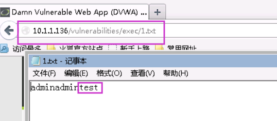 打开http://10.1.1.136/vulnerabilities/exec/1.txt如下图