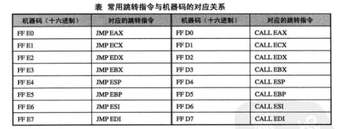 常用的跳转指令与机器码之间的对应关系:
