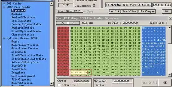 你可以通过跟在后面的签名来将一个PE二进制文件和其它含有根的二进制文件区分开来,跟在后面的签名可由头成员'e_lfanew'(它是从字节偏移地址60处开始的,有32字节长)所设定的偏移地址找到。对于OS/2系统和Windows系统的二进制文件来说,签名是一个16位的word单元;对于PE文件来说,它是一个按照8位字节边界对齐的32位的longword单元,并且IMAGE_NT_SIGNATURE(NT签名)的值已由#defined定义为0x00004550。