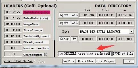 3. 用stud_pe工具打开calc文件,查看文件位置信息,对比是否准确。打开stud_pe,加载calc,点击红色箭头指示的按钮,会出现详细信息。