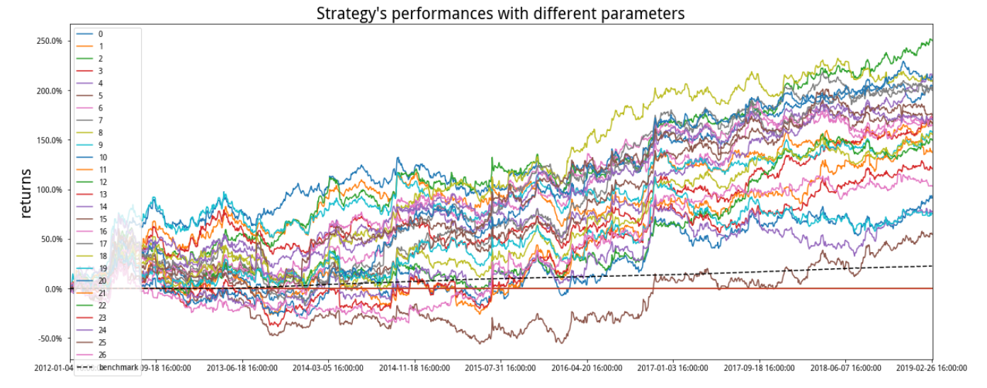 可以看到绩效在几个参数下都有所所提升。说明截面波动率过滤方法达到了我们希望达到的效果。
