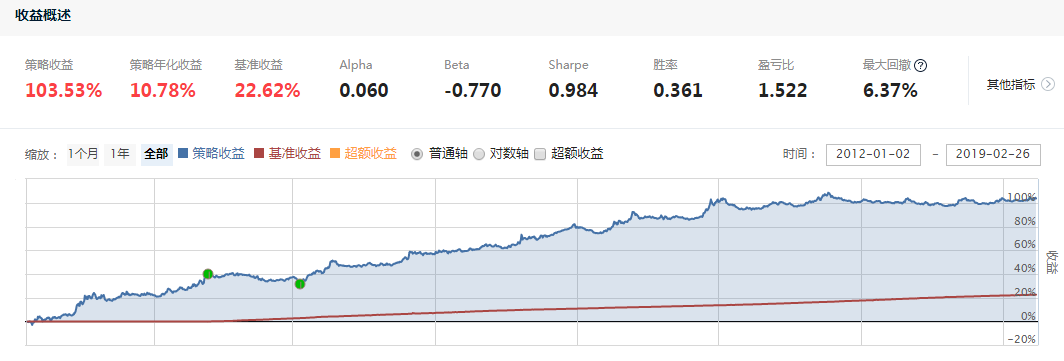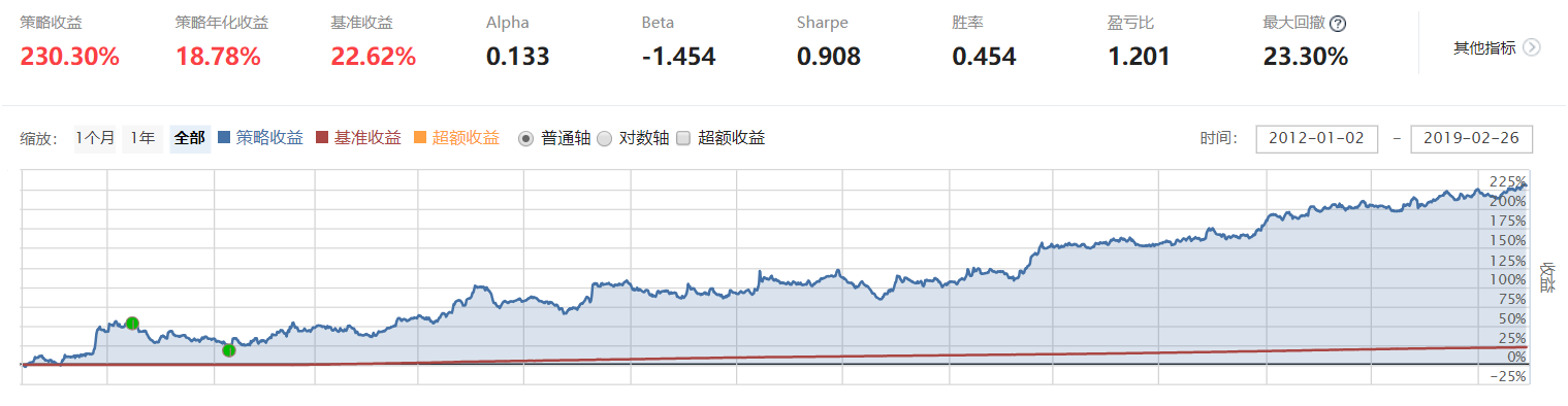我们还加入了波动率过滤,和追踪止损模块,希望以此验证指标的有效性,同时在验证过程中对传统方法进行调整,以期获得更好的绩效。