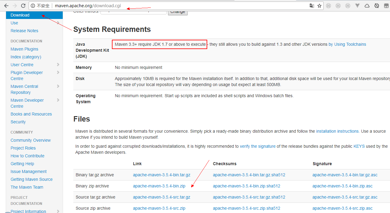 在浏览器中打开下载地址:http://maven.apache.org/download.cgi