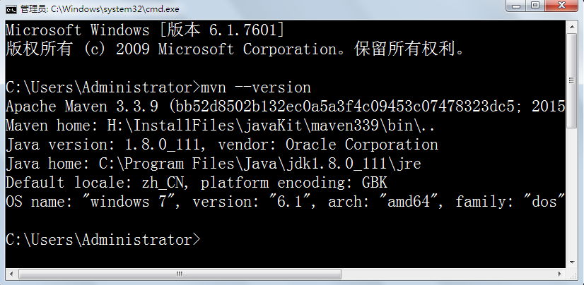 4.在cmd输入mvn –version,如果出现maven的版本信息,说明配置成功。