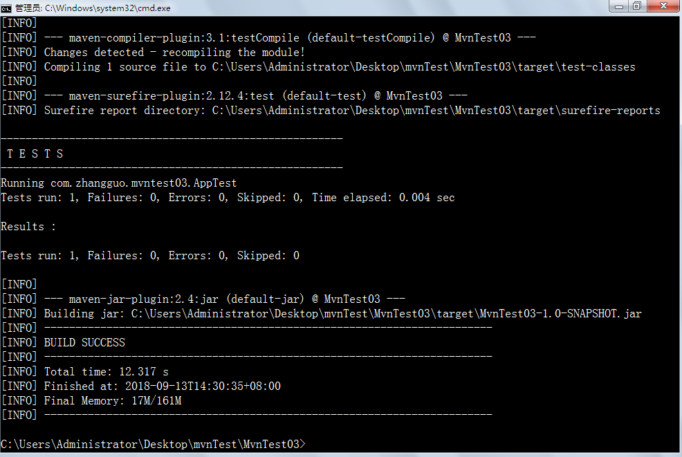 3、请在命令行模式下新建一个maven普通项目,导入到IDEA中,运行,打包输出结果
