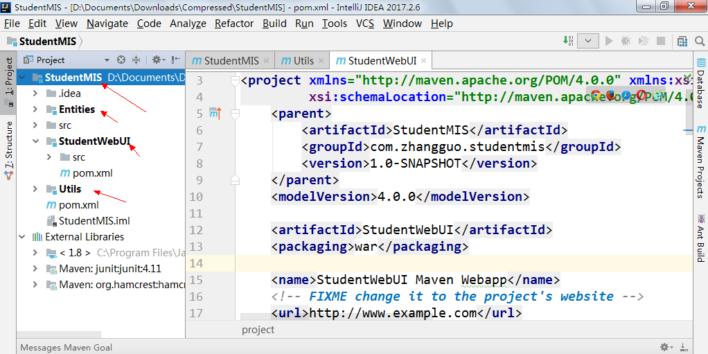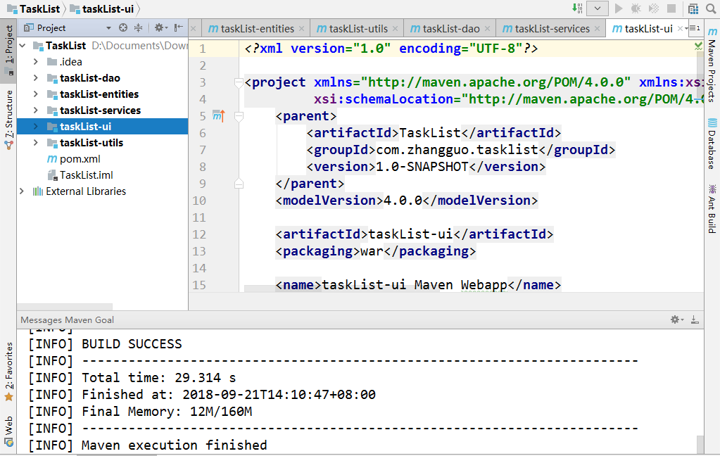 9、将考试中的两个项目合并成一个多模块的Maven项目,两个ui层,一个使用jstl一个使用纯HTML